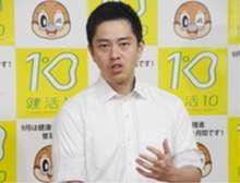記者団の質問に答える大阪府の吉村洋文知事=26日午後、大阪市中央区