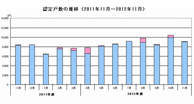 国土交通省が12月14日発表した11月の長期優良住宅の認定戸数は戸建て住宅が9067戸、共同住宅が40戸で、合計9107戸だった。前年同月に比べ7.7%増。3カ月連続で前年の実績を上回った。