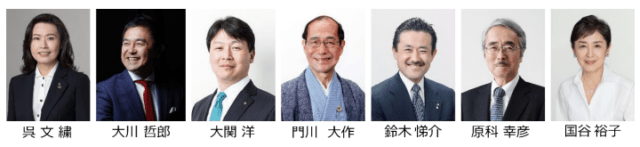 呉文繍さん(国際航業代表取締役会)▽大川哲郎さん(大川印刷代表取締役社長)▽大関洋さん(ニッセイアセットマネジメント代表取締役社長)▽鈴木悌介さん(エネルギーから経済を考える経営者ネットワーク会議代表理事)▽原科幸彦さん(千葉商科大学学長)▽門川大作さん(京都市長)※ビデオ出演