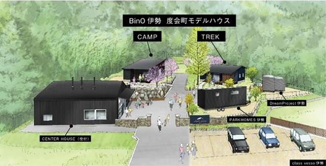12月下旬からは、宿泊できる住宅展示場「クラスベッソ伊勢」としてもサービスを開始。BinOシリーズおよびトレーラーハウスの4棟に宿泊体験できるほか、1棟貸し切りの高級貸別荘としても利用できる。伊勢神宮から車で約30分の立地で、自然豊かな山の中でバーベキューやサウナなど、スローライフを体感できる。