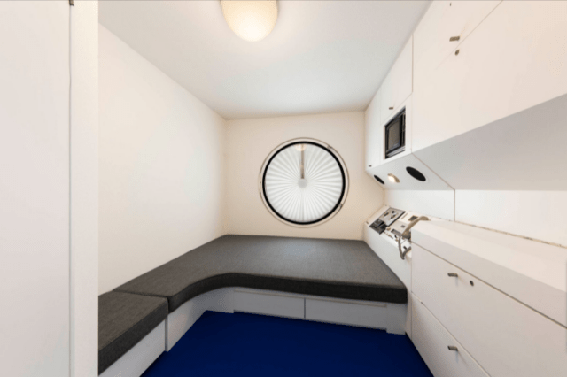 ①CAPSULE A – A906(ORIGINAL)。中銀ビルで、ビジネスマンのセカンドハウス・オフィスとして設計された空間。約8.5m²(幅約2.3m×奥行約3.7m×天井高約2.1m)