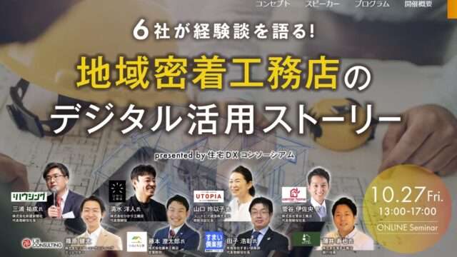 2023年7月に発足した共同事業体「住宅DXコンソーシアム」が、地域密着工務店6社のデジタル活用ストーリーを紹介するオンライン(Zoom)イベントを開催する。住宅業界で重要性を増す「デジタル変革(DX)」をテーマに、住宅会社が今取るべきアクションについて考察する基調講演や、具体的な活用事例を知る分科会を行う。日時は、10月27日(金)13時~17時。参加費は無料。完全予約制(定員300人)。