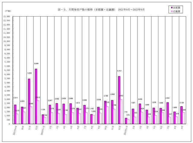 月間発売戸数の推移(首都圏・近畿圏) 2021年9月~2023年9月