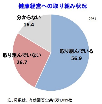 帝国データバンク(東京都港区)はこのほど、全国2万6991社を対象に実施した「健康経営」への取り組みに対する企業の意識調査の結果を発表した。有効回答企業数は1万1039社、回答率40.9%。