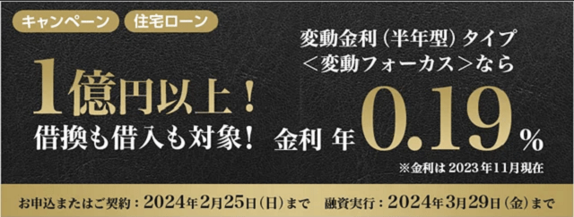 11月現在の金利の場合、変動金利(半年型)タイプ<変動フォーカス>は、金利年0.19%~になる。