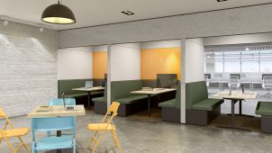 30種以上のフレームスタイルと23種のCMF(Color、Material、Finish=表面デザイン)による600通り以上の組み合わせが可能。オフィスパーティションのシステム性はそのままに、飾らず、気取らず、丁度よい空間をつくり出せるとする。