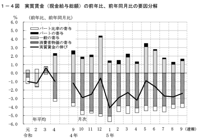9月の実質賃金、2.4%減 18カ月連続マイナス―厚労省