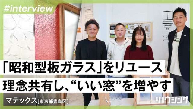 マテックス(東京都豊島区)は、1960~80年代にかけて製造された柄付きの単板ガラス「昭和型板ガラス(レトロガラス)」を「cycleglas(サイクルグラス)」の名でリユースし、木製室内窓「マドリノ」として販売する活動に取り組んでいる。ガラス産業が抱える課題を踏まえながらハードルの高いリユース活動を通じ、豊かな空間づくりと環境問題への取り組みを両立することを目指す。