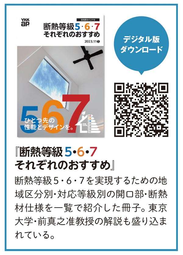 平野:それならYKK APがお配りしている『断熱等級5・6・7それぞれのおすすめ』というカタログが好評で、皆さんにも活用していただきたい。断熱材はこれ、窓はこれ、と具体的に示し、6なら樹脂窓で、7まで行くなら付加断熱を、と明確化している。