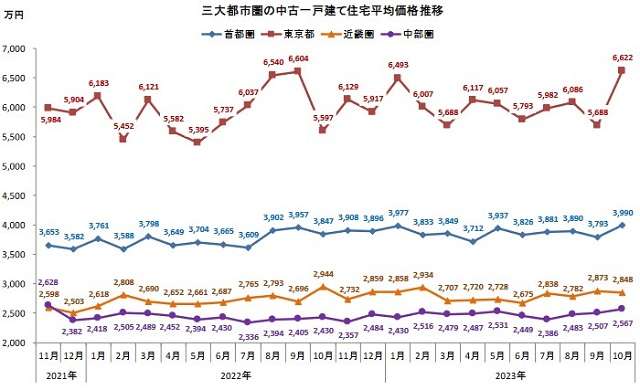 東京カンテイ(東京都品川区)はこのほど、10月の主要都市における中古木造一戸建ての供給動向を発表した。首都圏が反転上昇、近畿圏は反転下落、中部圏は3カ月連続上昇した。