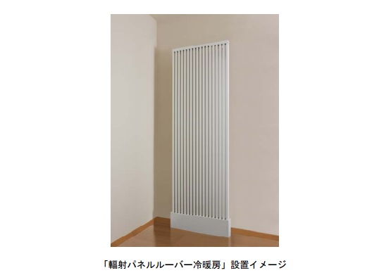 「輻射パネルルーバー冷暖房」は、パネルルーバーに冷温水を通し、その輻射熱で天井や壁、床を冷やしたり暖めたりするヒートポンプ式冷暖房設備。空気自体を冷やしたり暖めたりする方式ではないため室内の温度差が発生しにくく、風が出ないためホコリが立たない。冷房時には室内の余分な水分をパネルルーバー表面に結露させて屋外に排出する、といった機能ももつ。
