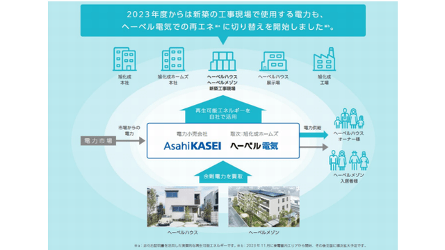 旭化成ホームズ(東京都千代田区)はこのほど、東京電力の供給エリアで着工するヘーベルハウス・ヘーベルメゾンの建築現場で使用する電力を、実質再生可能エネルギーに切り替えた。同エリア以外は、2024年夏以降に順次切り替え予定だという。