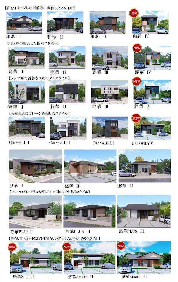 「日本の家・檜の家シリーズ」「匠の技クレステージ18」「匠の技クレステージS」を統合し、外観スタイル25種類、75プランを新たにラインアップ。