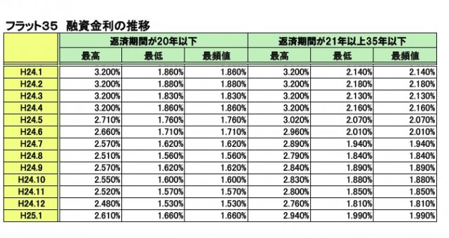 住宅金融支援機構(東京都文京区)は1月7日、各金融機関が提供する長期固定住宅ローン「フラット35」の2013年1月の金利水準を発表した。