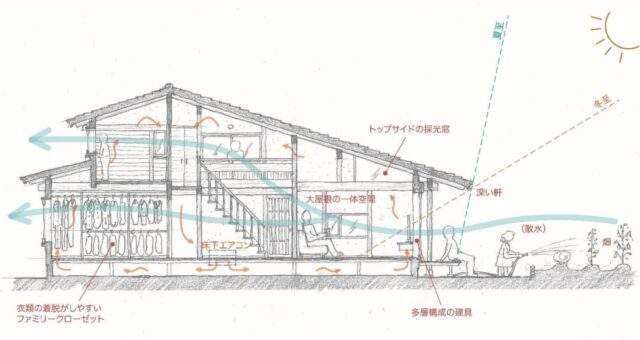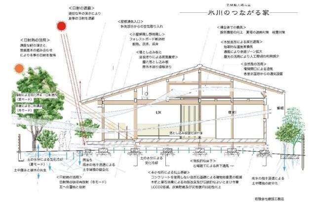 ▽氷川のつながる家(綾部工務店)=地方都市の郊外にある敷地において、ライフスタイルの変化に応じた可変性のあるシンプルな構造の中に、季節感のある暮らしを容易にする工夫を盛り込み、人や自然、伝統や技術など様々な要素と「つながる」ことをコンセプトとした住宅。