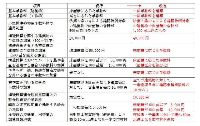 改正後の確認検査手数料表はこちら。