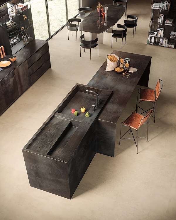ヨーロッパを中心に活躍する人気デザイナーが柄を選定。サイズはカウンター材に最適な厚さ12mm、最大寸法1620×3220mmとなっている。