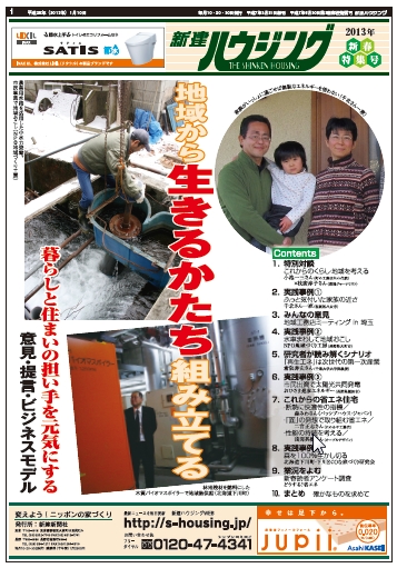 新建ハウジングの2013年新春特集号は「コミュニティー」「エネルギー」をキーワードに、住まいの再生、地域の再生に挑戦する実践者たちにスポットをあてました。巻頭の特別対談を皮切りに、5つの提言と4つの事例を紹介。また地域工務店ミーティングin埼玉と読者アンケートの内容を収録し、多様な意見を掲載しています。