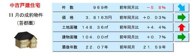 首都圏の中古戸建ての成約件数は969件(前年同月比5.8%減)。新規登録件数は5719件(同26.0%増)で、11カ月連続で前年同月を上回った。成約価格は3816万円(同0.03%増)と、小幅ながら3カ月連続で前年同月を上回った。新規登録価格は4301万円(同6.4%減)で7カ月連続で前年同月を下回った。