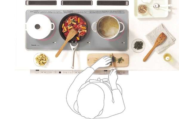 さらに、3口横並びの「ワイドコンロ」の炊飯・湯沸かし機能を使うことで家電スペースを省略。コンロ天板とカウンターの段差が小さいため、コンロ手前のスペースで盛り付けや仮置きなどの作業ができるうえ、できたての料理をすぐにダイニングテーブルに出すことができる。