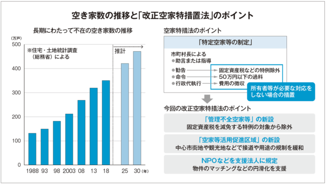 このため政府は2015年に「空家特措法」を制定、危険な空き家を「特定空家」として指定した場合、上記の軽減特例を解除、最終的には行政が「特定空家」を強制的に取り壊すことができるようにした。23年12月13日に施行されたのはこの改正法だ。