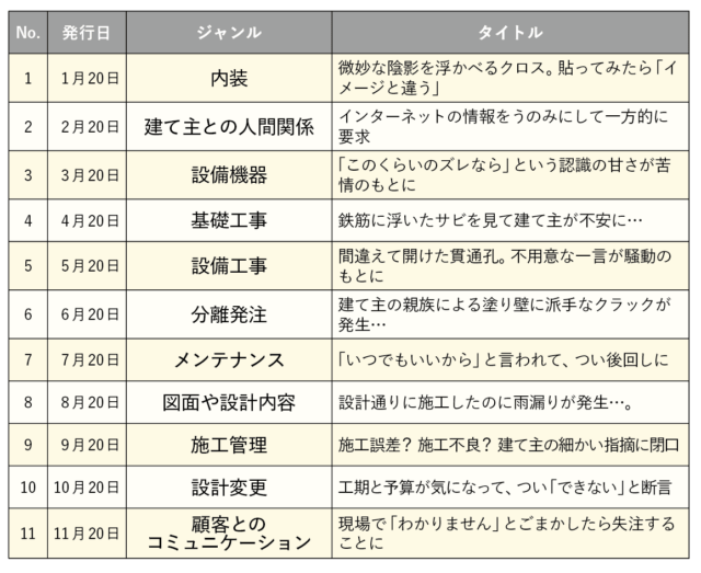 2023年の連載の振り返りを行いつつ、あらためてトラブル防止のポイントを見直そう。1月20日号から11月20日号までをまとめたのが、右記に掲載した表だ。