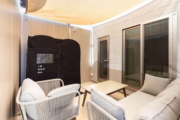 バスルームとつながるサウナ付き屋外空間