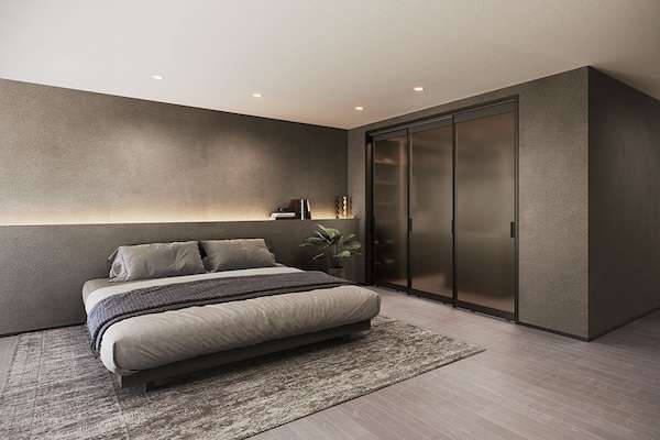 「引き戸・吊り戸」は、縦框22mmの細身のアルミフレームに半透明の樹脂パネルを組み合わせることで、空間を仕切る・隠すを圧迫感なく緩やかに実現。