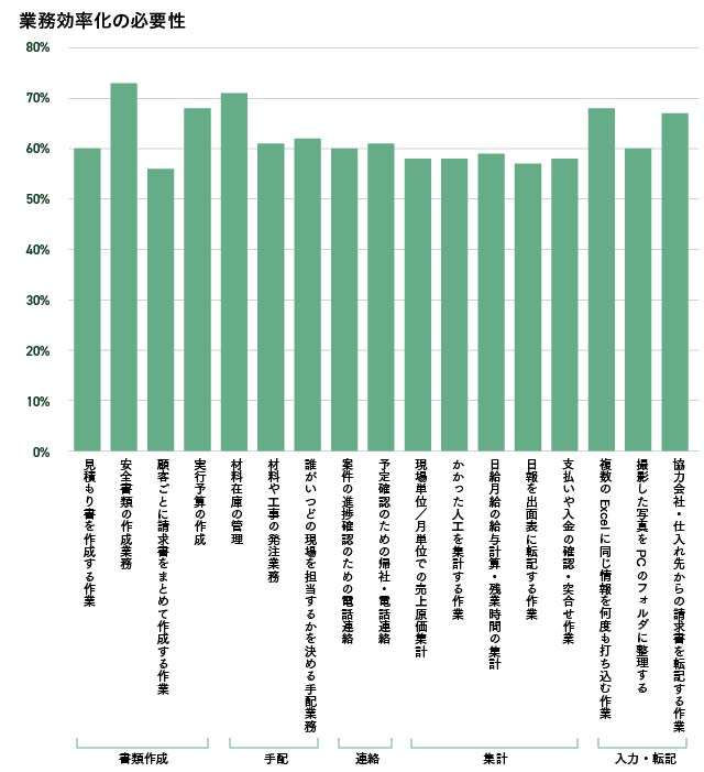 調査対象は「社員数5~100名の法人かつ正社員に占める職人数が全体の半数以上または在籍職人10人以上在籍」の工事会社。高齢化や新たな担い手確保などに起因する人手不足が指摘されている建設業界にもかかわらず、元請け→工事会社の業界構造の中で連携する企業の課題解消に時間がかかってしまうことは経営に与えるインパクトも大きい。