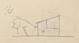 断面計画も併せて行いました。南の窓にどう太陽熱を当てるかですが、袖壁の日影の影響が大きく、斜めにすることで意匠と日射熱利用のバランスを両立させました。