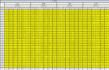 在室時、LDKは平均27.3℃、寝室は26.6℃、洗面は27.2℃ととなっており、冷房期間は居室と非居室ともに涼しく過ごされているようです。