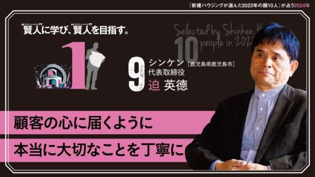 工務店、住宅業界にとってかなり厳しい年となった2023年を、トップランナー工務店はいかに乗り切ったのか?また、2024年はどうなると予測し、どんな手を打っているのか?23年、新建ハウジングに多大なるご協力をいただいた「2023年の顔10人」の方々に、3つの質問について回答してもらった。