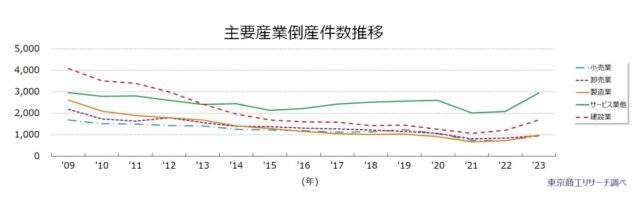 今後の動向について、商工リサーチは「24年は4月に民間金融機関によるゼロゼロ融資返済がピークを迎え、資金繰りが一段と厳しくなる企業が増える。1万件の壁を越える可能性も出てきた」と指摘する。