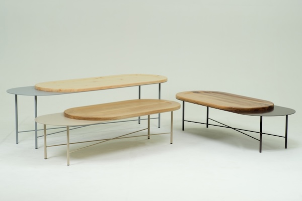 資源として使われることが少ない地元の未利用材(庄原市産ヒノキ大径木、庄原市産ナラ材、広島駅周辺の伐採対象の街路樹など)を優先的に利用し、オフィスや公共施設、商業施設向けにデザイン。 異素材のスチールと組み合わせることで、主張し過ぎず、けれども存在感のある家具に仕上げた。