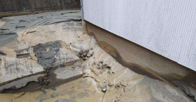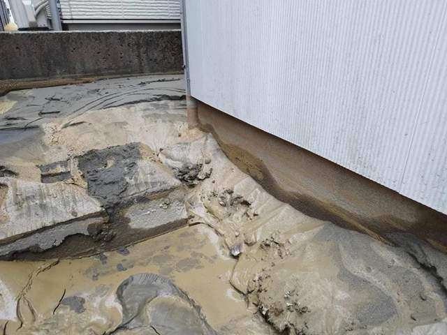 ・中学の同級生から連絡。2年前に某地域ビルダーで建てた新築戸建てが傾いたとのことで様子を見に向かう