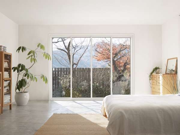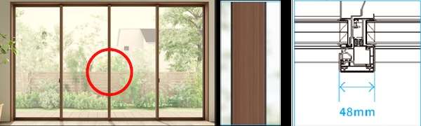 トリプルガラスと熱伝導率が低い樹脂を挟んだサーマルブレイク構造の枠を採用し、熱貫流率1.5W/(㎡・k)の断熱性能を実現。従来品と比べて段差が半分の35mmとなったほか、4枚建合掌框は幅48mmのスリムな框デザインとすることで採光面積を向上した。