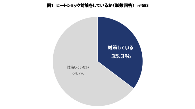 ヒートショックの対策状況を調べたところ、「対策をしている」と回答した人の割合は35.3%にとどまった。