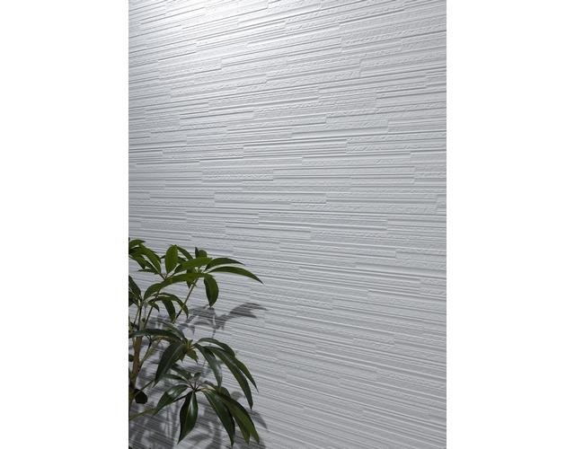石積とタイルの風合いを融合した「ブレンダスタ」は、ひとつのデザインのなかに曲面、平面、傾斜面、直線的な表現を織り交ぜた斬新な柄。人気のホワイト系2色(マットホワイト、マットミルク)を含む全4色。