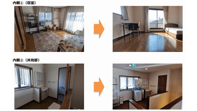 同物件は、約2年間空き家状態となっていた築約28年の一戸建て。敷地面積が200㎡近くあり、広さを確保できる居室が5部屋あった。また立地の面からは、神戸市中心部へのアクセスが良く、周辺には学校が多い一方、自然豊かな六甲山を背に閑静な住宅街が広がっていることから、住宅ニーズが高いエリアであるといい、シェアハウスとしての活用を決定した。