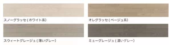床暖房対応。スノーグラッセ、オレグラッセ、スウィートグレージュ、ミューグレージュの4色。