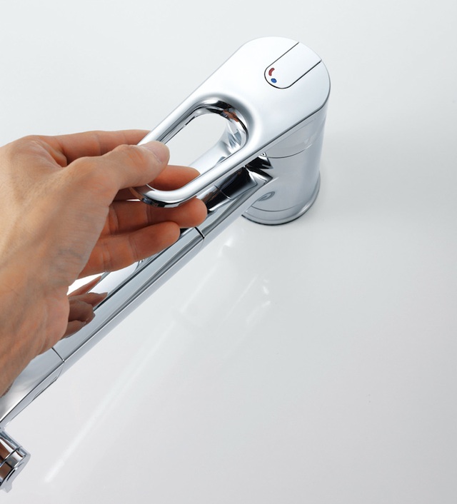 またキッチン・洗面用の水栓金具は、約9割を「エコハンドル水栓」に拡充する。従来のシングルレバー水栓はレバーハンドル正面の位置でもお湯が出るため、無意識にムダなお湯を使ってしまうことがあった。これに対し「エコハンドル水栓」は、ハンドル正面の位置で「水」を出す省エネ設計を採用。従来比約30%の省エネを実現する。