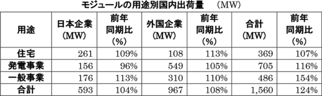 モジュールの用途別国内出荷量(JPEA公表資料より引用)