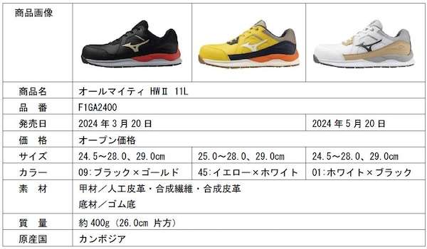 ミズノ(大阪市)は、建設現場などの重労働者向けワークシューズ「オールマイティ HWⅡ 11L(エイチダブリューツーイチイチエル)」を3月20日に発売する。