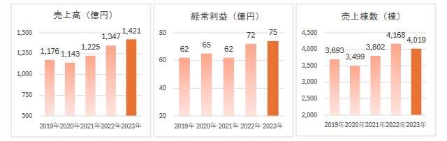 主力の住宅事業は、棟数は減少したが、価格改定などにより売上高は前期比0.4%増となった。また、断熱材事業ではゼネコン向け大型物件の施工増などから前期比10%増となったほか、不動産投資事業は収益物件の販売増などから前期比62%増と好調に推移した。