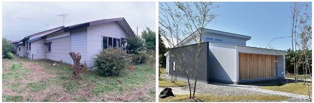 (右)リノベ後:フルリノベーションした新家屋 エクステリアも含めてリデザインした