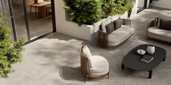 それぞれ300角・300✕600角、600角の3サイズ展開とし、同シリーズで内用・外用を用意した。