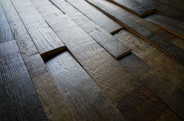 ホワイトオーク柾目材からつくられ、長いもので約50年使用されたウイスキー樽を材料にしたボーダー状壁材。