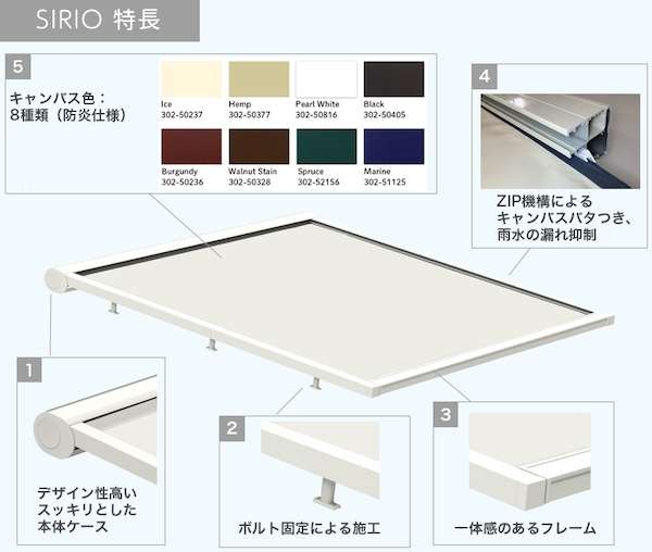 景観を引き立てるデザイン性と実用性が特徴のスクリーンオーニング商品。
