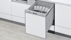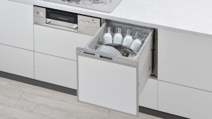 1日分の食器が洗える大容量仕様で、希望時間に洗浄を開始する「ディレイ機能」、乾燥をアシストする「ドライアシスト機能」を備える。