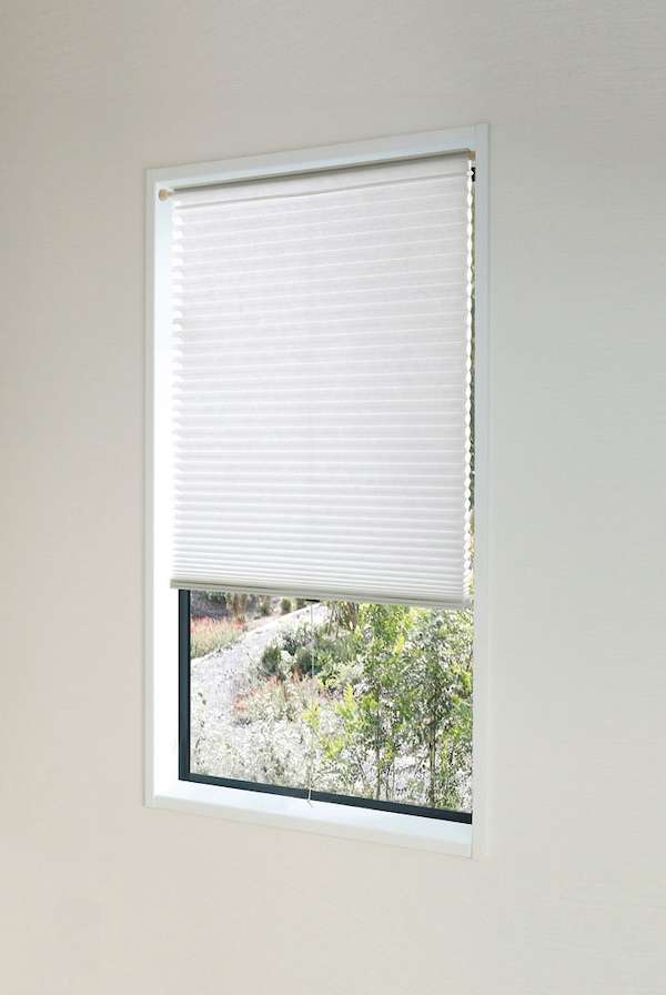 壁に穴を開けることなく、市販のつっぱり棒を窓の上部に差し込むだけで容易に取り付けられるハニカムシェード。ハニカム構造の空気層が窓からの熱の出入りを防いで冷暖房効率を高め、適度な光を取り入れながら99.5%の紫外線をカットする。
